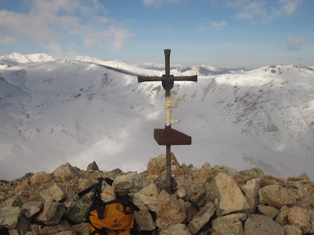 A sobre tenim les grans congestes i cornises de neu que hi ha a la carena del coll de la Mort de l'Escolà.